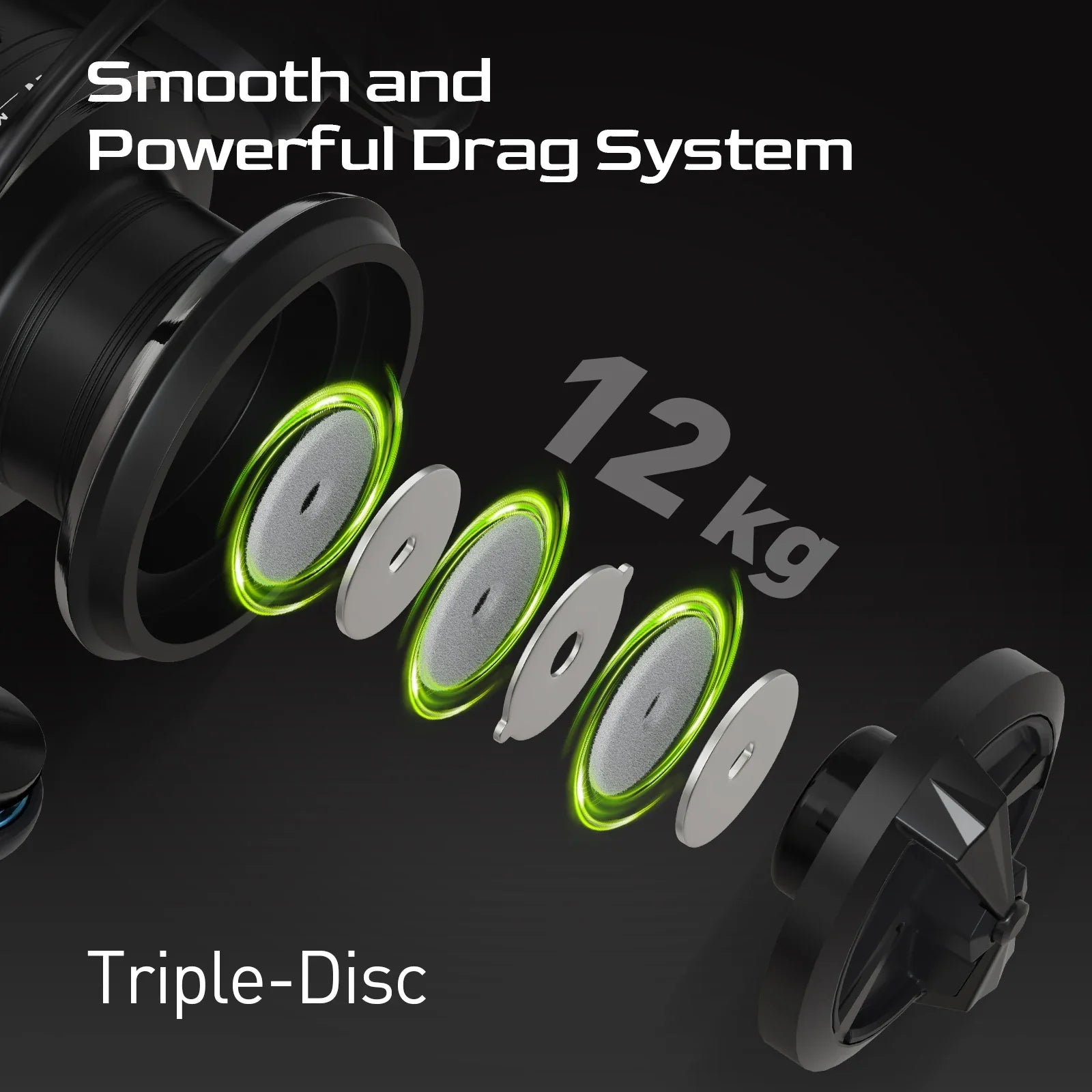 ✅ 12KG Max Drag Power – Triple disc drag for smooth yet strong performance